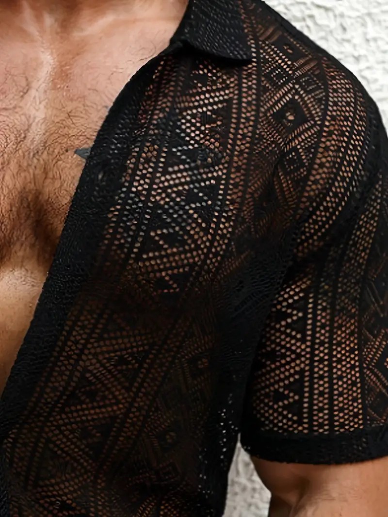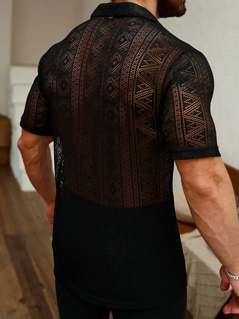 Men's Casual Lace Transparent Short-sleeved Shirt