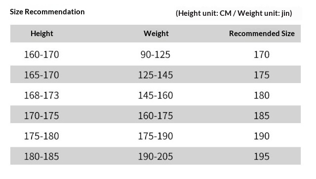 Sizes: 170, 175, 180, 185, 190, 195